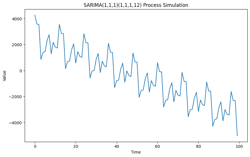 plt.title('SARIMA(1,1,1)(1,1,1,12) Process Simulation')