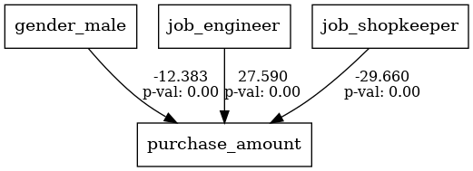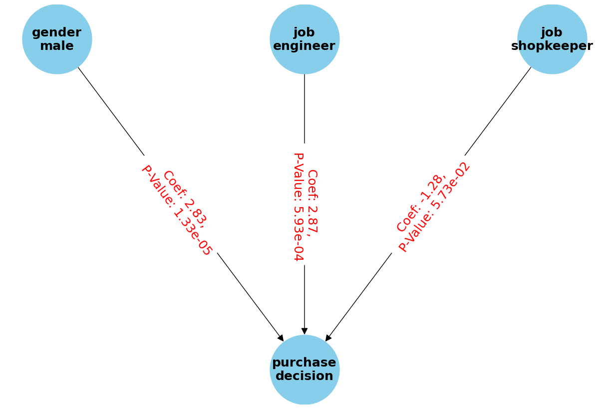 ('job\nengineer', 'purchase\ndecision', results_df.loc[results_df['Variable'] == 'job_engineer', ['Coefficient', 'P-Value']].values[0]),