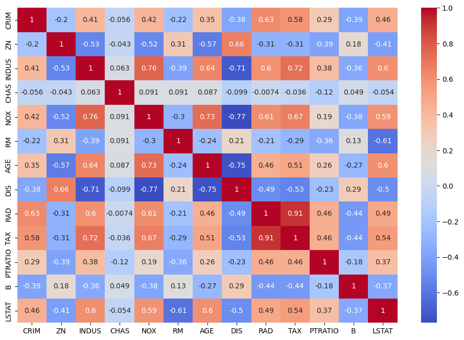 CRIM    ZN  INDUS CHAS    NOX     RM   AGE     DIS RAD    TAX  PTRATIO  \