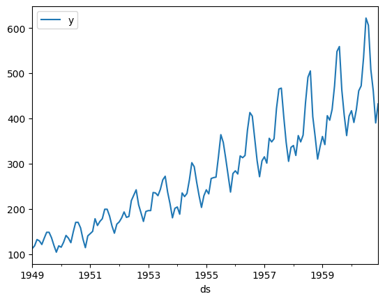unique_id ds y 0 AirPassengers 1949-01-01 112 1 AirPassengers 1949-02-01 118 2 AirPassengers 1949-03-01 132 3 AirPassengers 1949-04-01 129 4 AirPassengers 1949-05-01 121 .. ... ... ... 139 AirPassengers 1960-08-01 606 140 AirPassengers 1960-09-01 508 141 AirPassengers 1960-10-01 461 142 AirPassengers 1960-11-01 390 143 AirPassengers 1960-12-01 432 [144 rows x 3 columns]