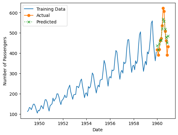 ここでは、mlforecastを用いてAirPassengersDFデータに対する基本的な時系列予測モデルを構築します。