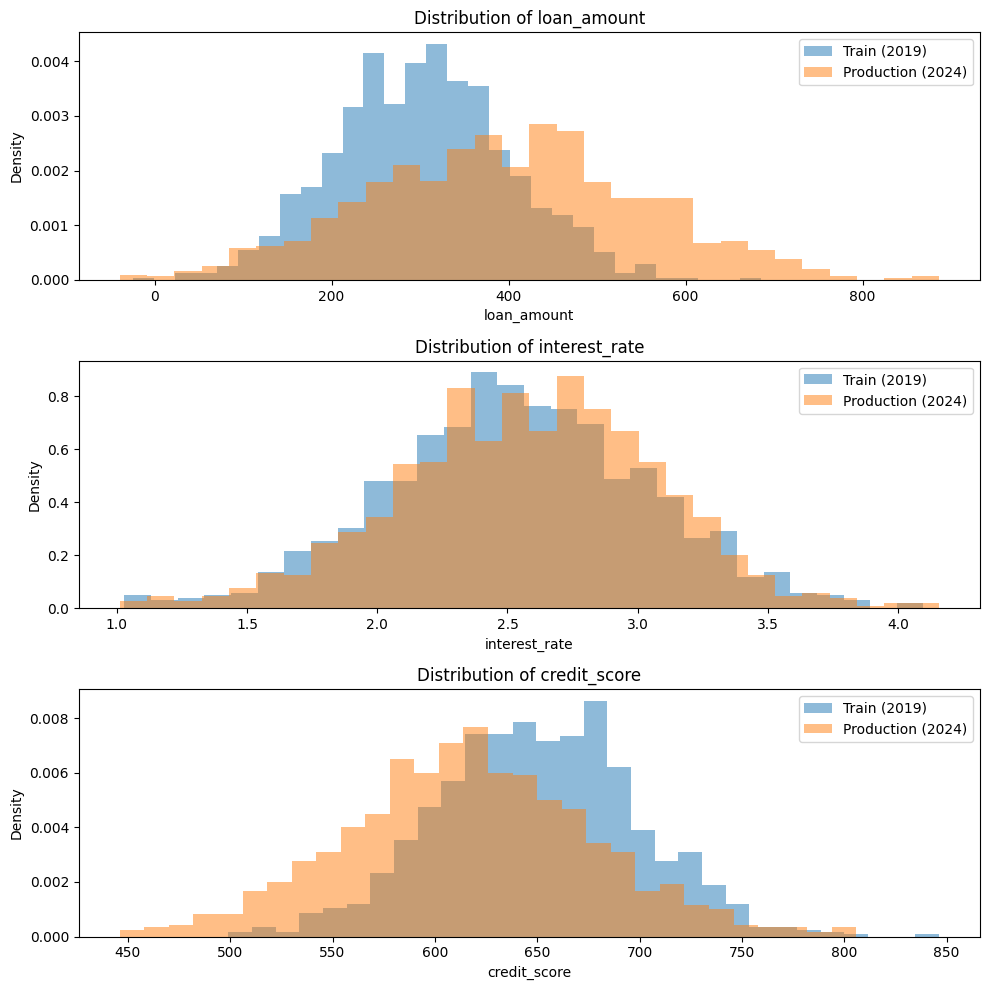 今回の分析から、ローン申込額( loan_amount )の分布が 2019 年の訓練データと 2024 年の本番データのあいだで劇的に変化していることが明らかになりました。