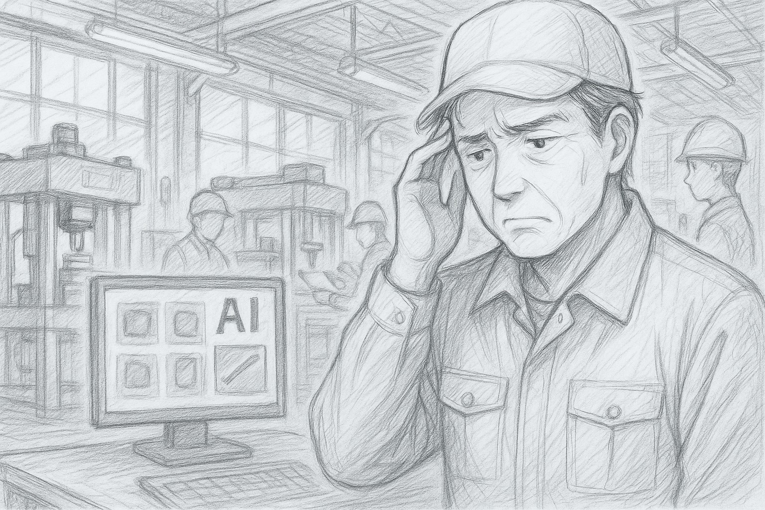 「AIが不良品と言うから、とりあえず作り直していますが、何が悪いのか分からないので、同じミスを繰り返してしまうんです。以前は山田主任が『ここの圧力が高すぎる』と具体的に教えてくれたのに」