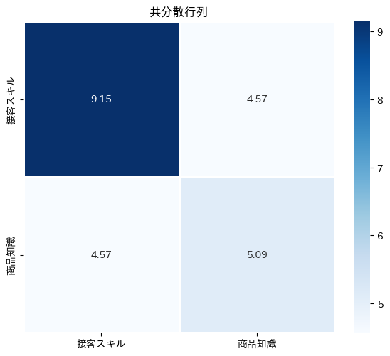 2つの変数(接客スキル、商品知識)の場合、共分散行列は2×2の表になります。
