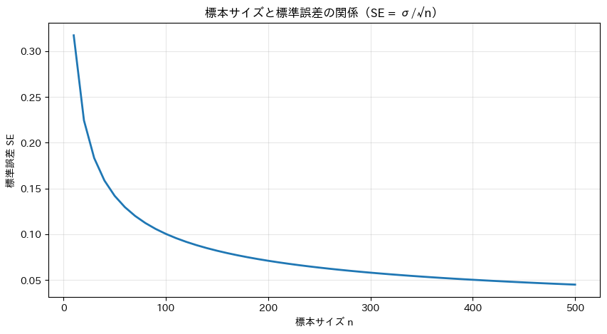 - 標本サイズと標準誤差の関係