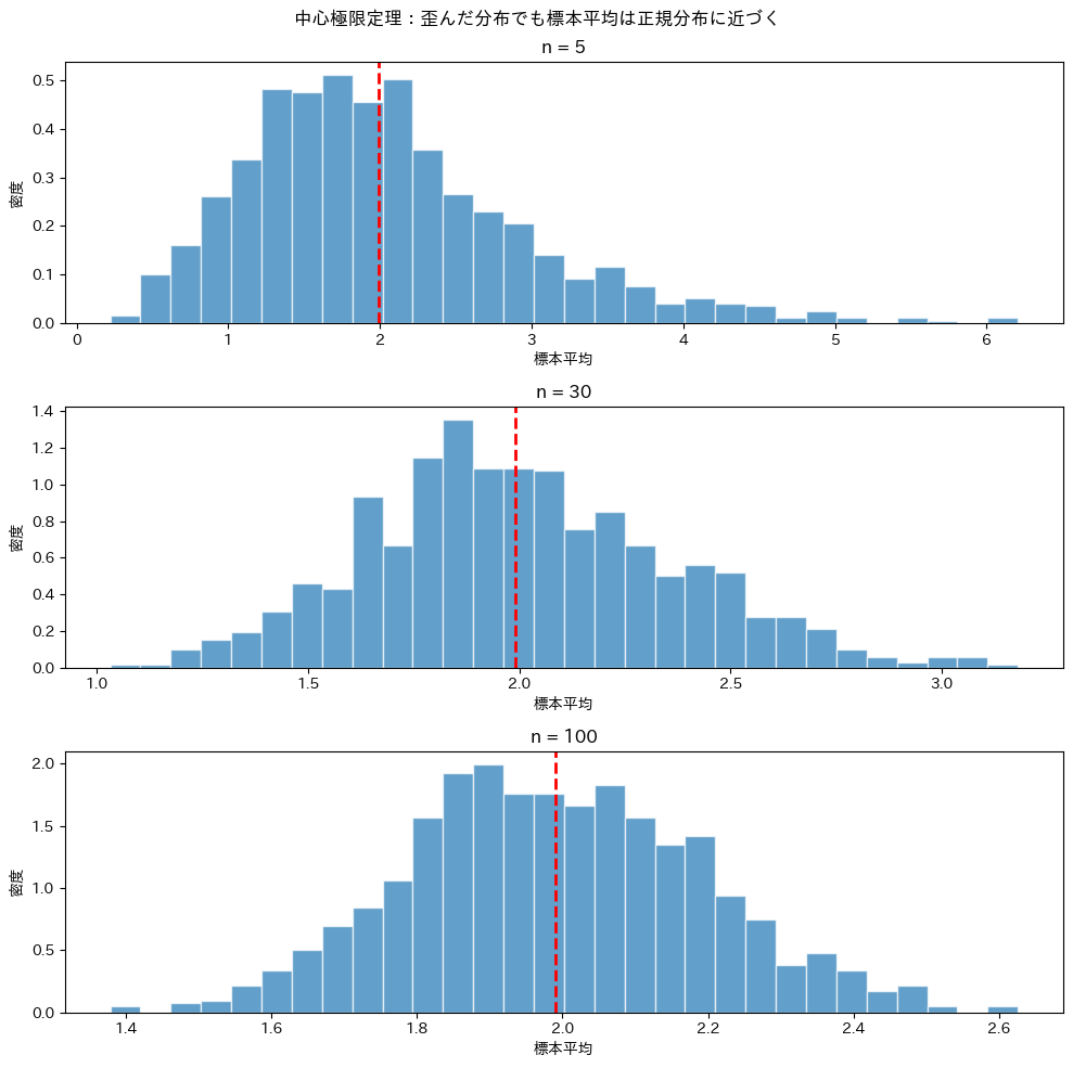 - 偏った分布でも中心極限定理は成り立つ