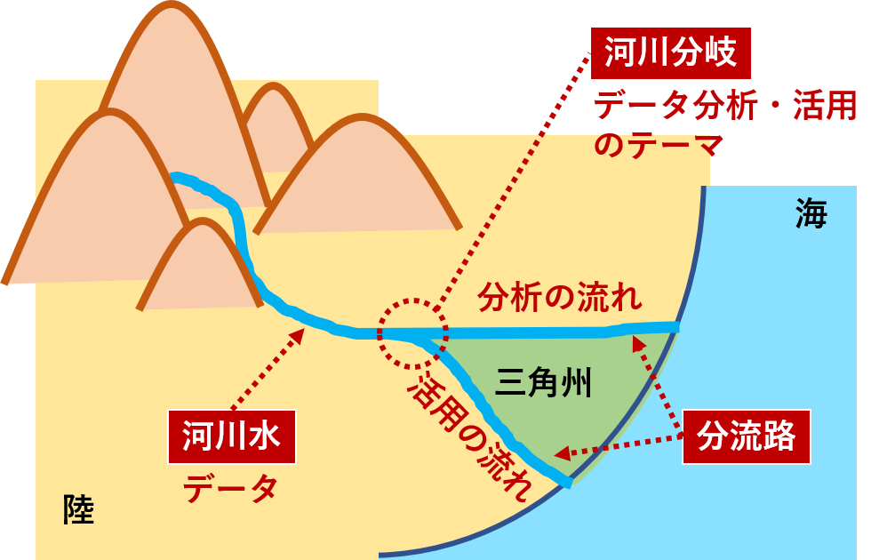 - 河川流が分かれる「河川分岐」 → データ分析・活用の「テーマ」