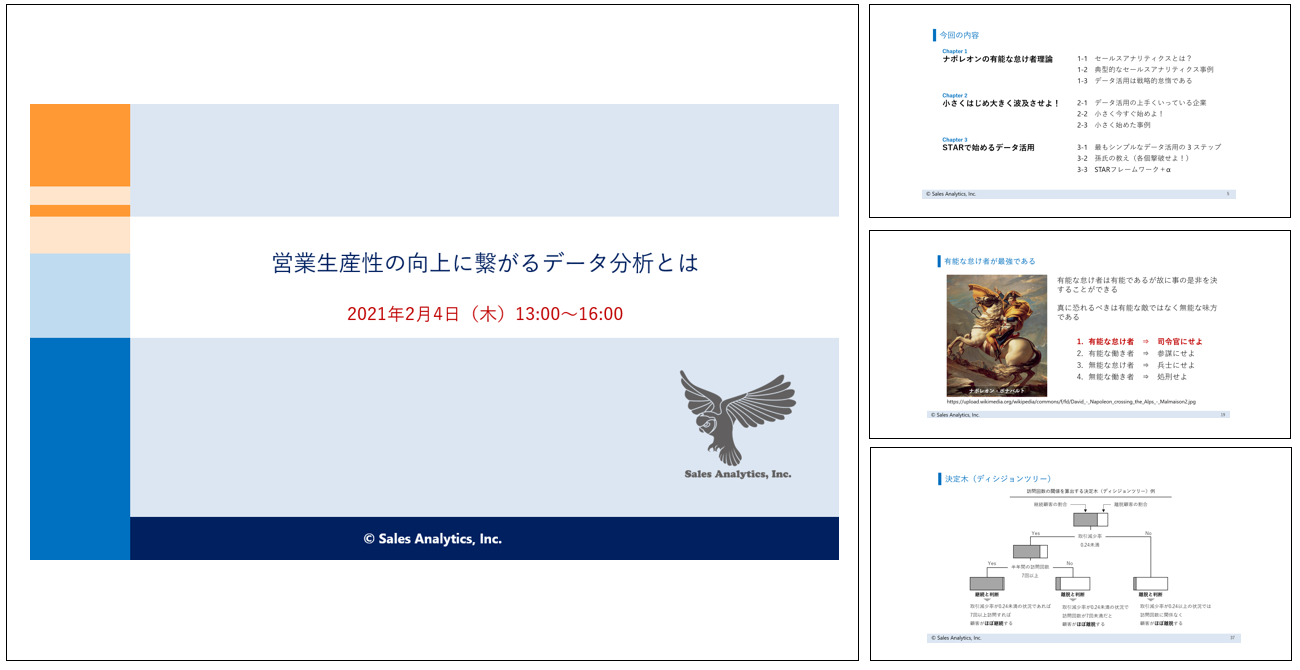 • 「ビジネスデータ分析」(ビジネスアナリティクス)と「セールスアナリティクス」