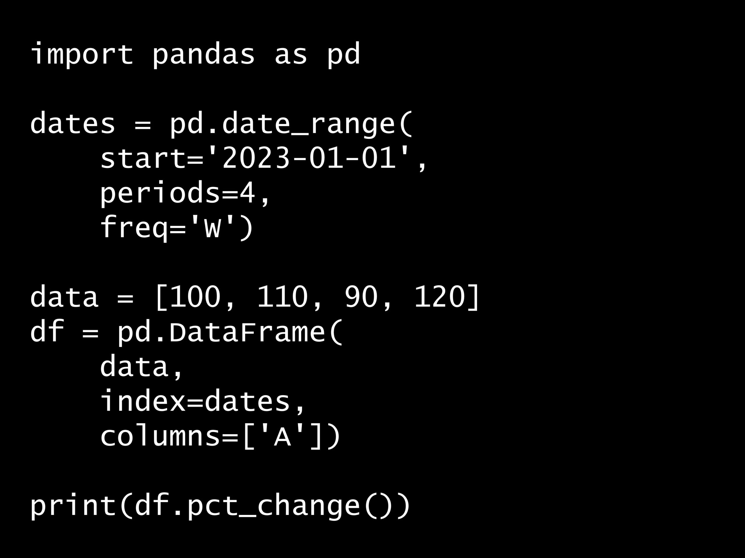 このコードは、日付をインデックスとする pandas DataFrame を作成し、shift(1)を使用してデータを1期分ずらします。これにより、各データポイントが1日後の日付に移動し、最初の日付にはNaNが表示されます。