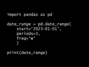 次の Python コードの出力はどれでしょうか? Python コード: import pandas as pd date_range = pd.date_range( start=’2023-01-01′, peri … 続きを読む Python 時系列分析 1,000本ノック