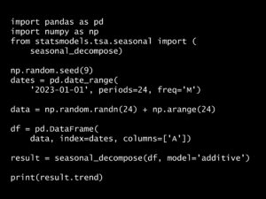 次の Python コードの出力はどれでしょうか? Python コード: import pandas as pd import numpy as np from statsmodels.tsa.seasonal imp … 続きを読む Python 時系列分析 1,000本ノック