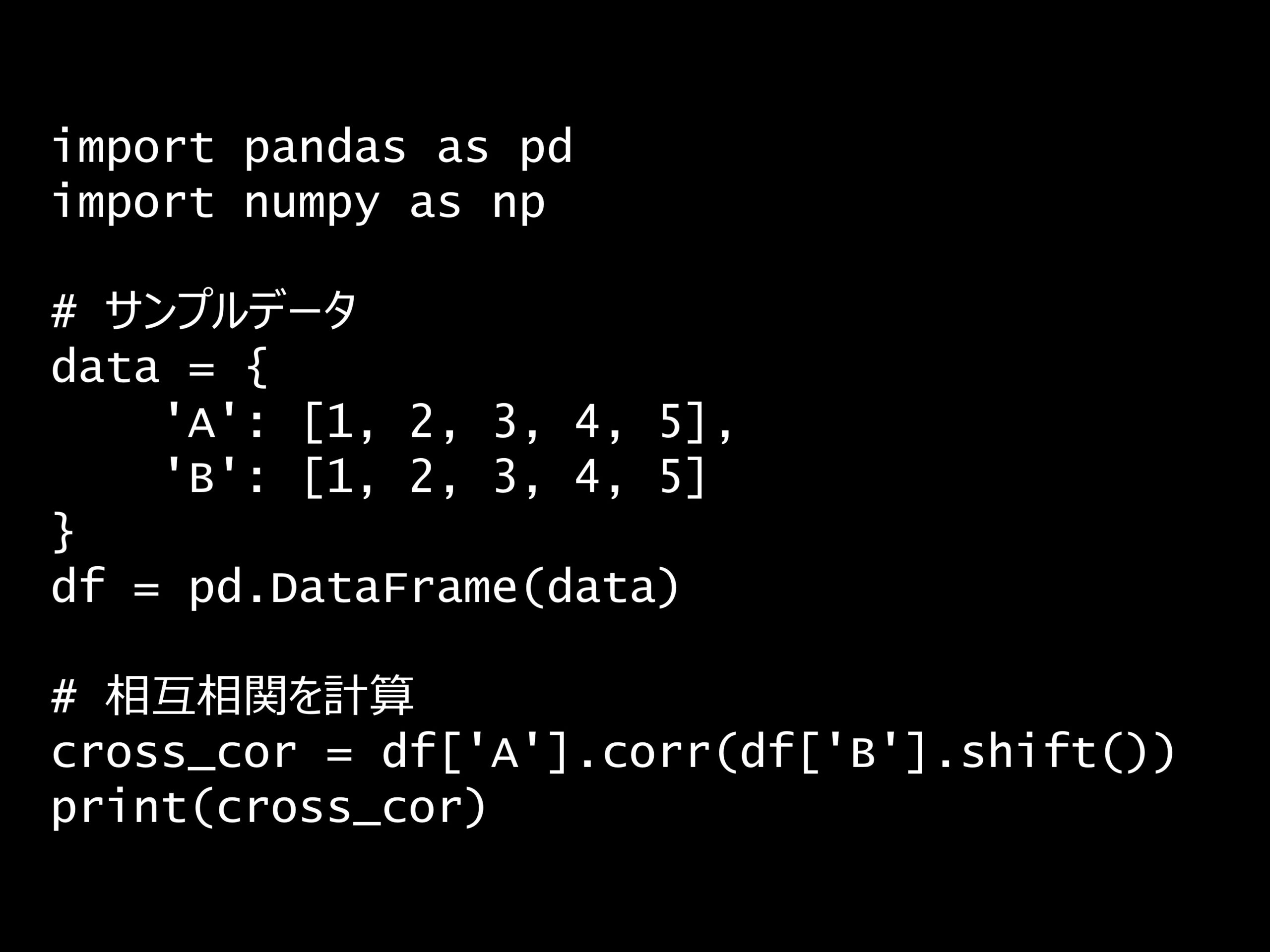 data)を入力します。 maxlagパラメータは検定に用いるラグ数を指定します。ラグは過去の情報が現在に及ぼす影響を表す時間的なズレのことを指します。verboseパラメータは、検定の結果を詳細に表示するかどうかを指定します。Falseに設定すると、検定の結果は表示されず、結果は代わりにresult変数に保存されます。