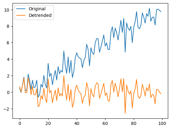 次の Python コードは、どのトレンド除去手法を使用していますか?