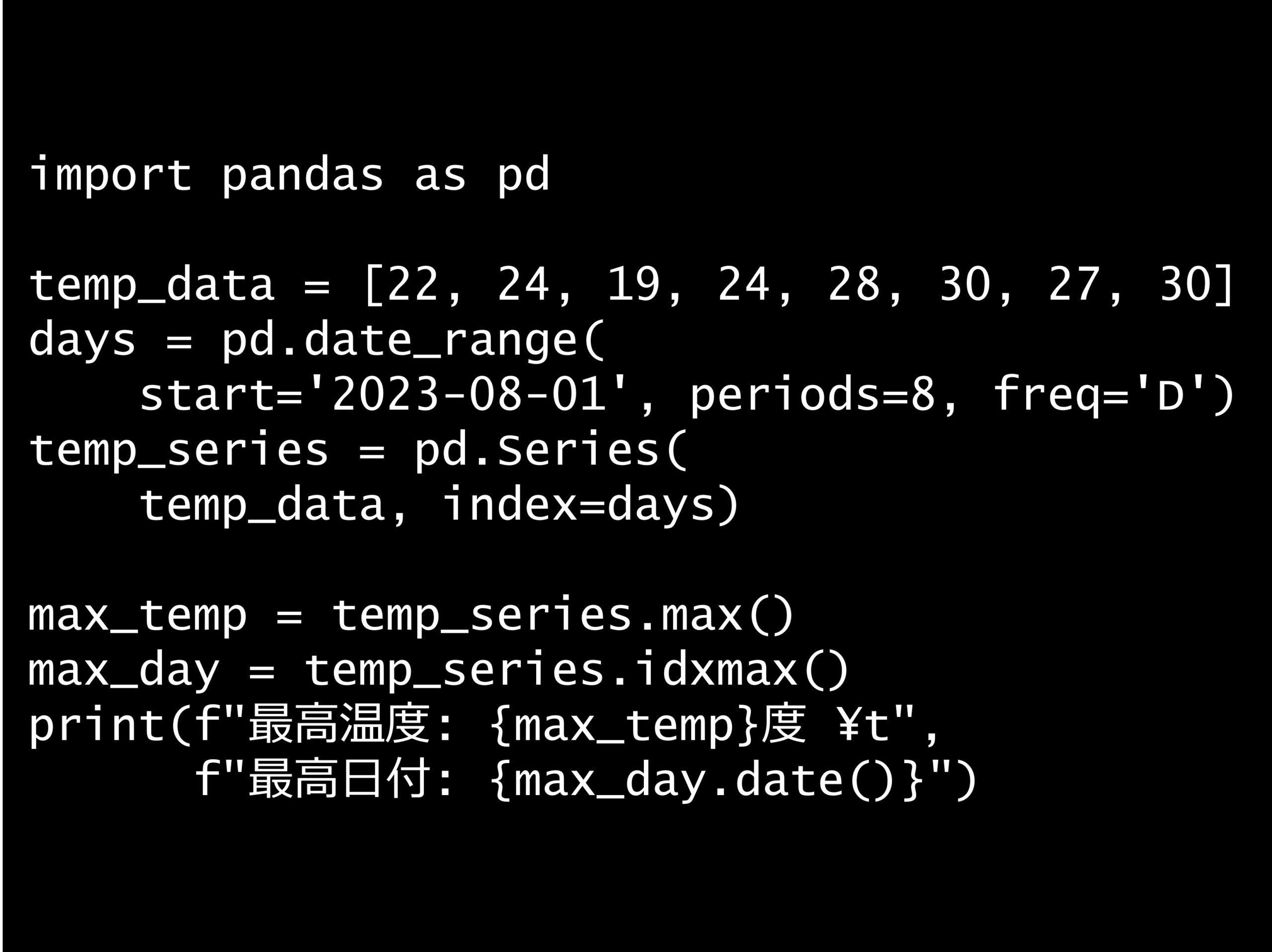 dataという名前のpandas.Seriesを作成し、累積和に10を加えたデータを生成します。np.random.seed(42) data = pd.Series(np.random.randn(50).cumsum() + 10)