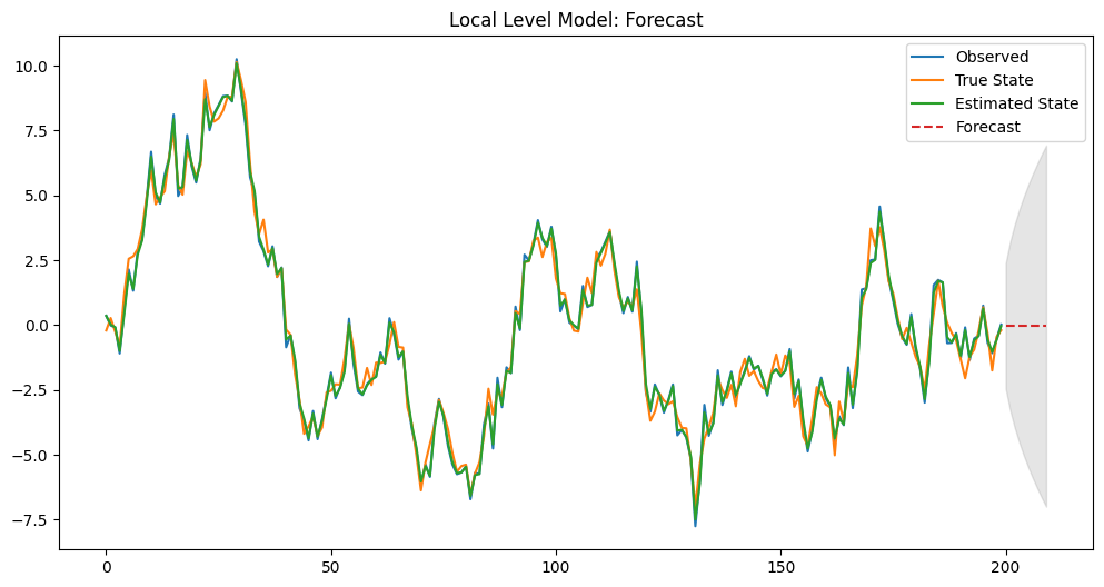 - 状態の推定: ローカルレベルモデルを使用して、観測データに基づいて状態を推定します。