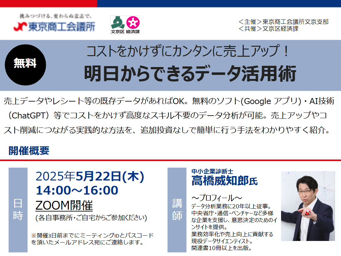 商工会議所で、スモールビジネスでもできるAIを使ったデータ活用術のお話しを、こっそりします。