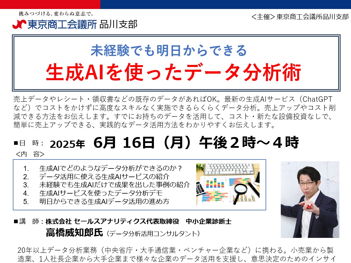 - タイトル: 〜未経験でも明日からできる〜生成AIを使ったデータ分析術