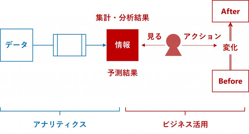 データ活用で成果を出すには、ビジネス活用時に「どこでどのような成果を出すのか」というテーマ設計スキルと、「その成果を出しやすくするための情報(集計・分析・予測結果)」をデータから作るためのアナリティクス(データ分析)スキルが必要になります。