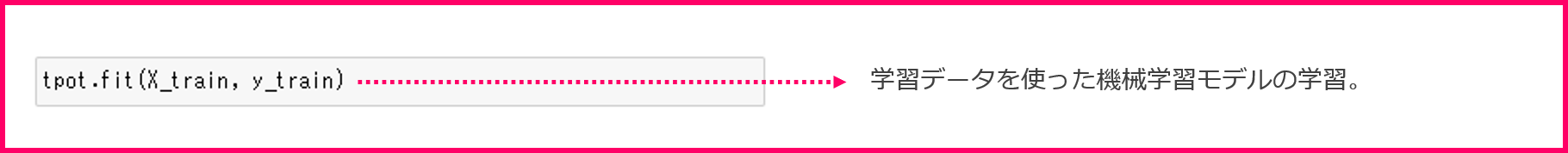 関数の引数として、学習用の特徴量X_trainと目的変数y_trainを指定します。