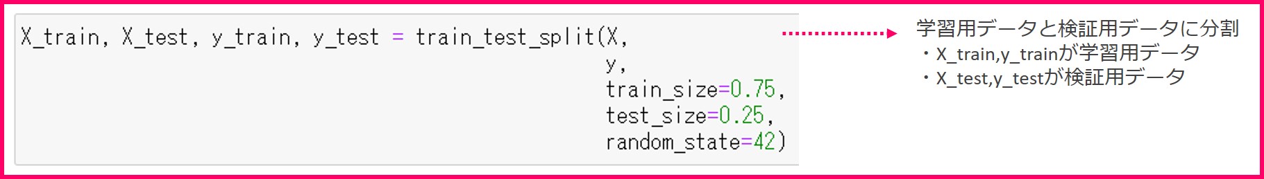 今回は学習用のデータを75%、検証用のデータを25%に分けます。