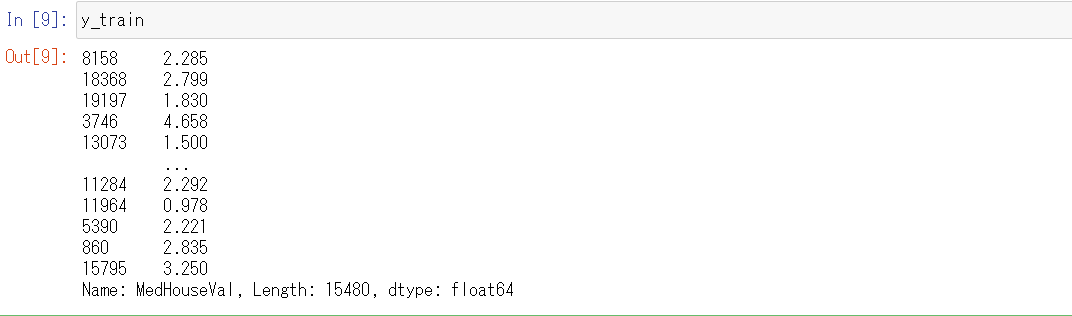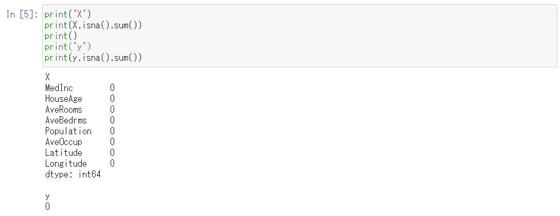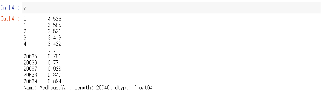 • 目的変数であるfetch_california_housing.targetをyに格納