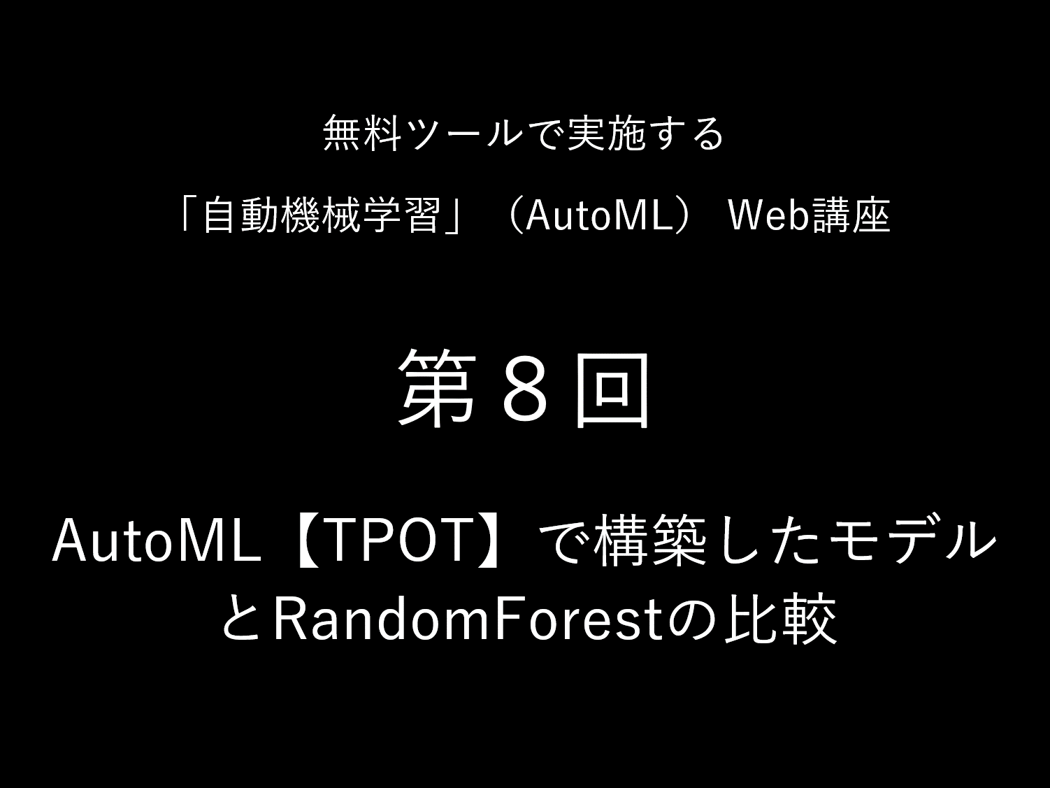 - TPOTRegressor :TPOTで回帰問題を解くためのモジュールです。
