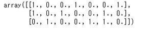 sparse=Falseを実行することで、なじみのあるnumpyの2次元配列で答えを得ることができます。sparse=Trueを設定すると、メモリ領域を圧縮できる形式で変換結果を保持しておくことができます。