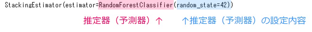 ## StackingEstimatorの設定を見る print(stacking_estimator)