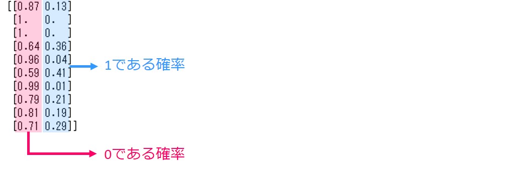 2列表示されます。左が0である確率、右が1である確率です。