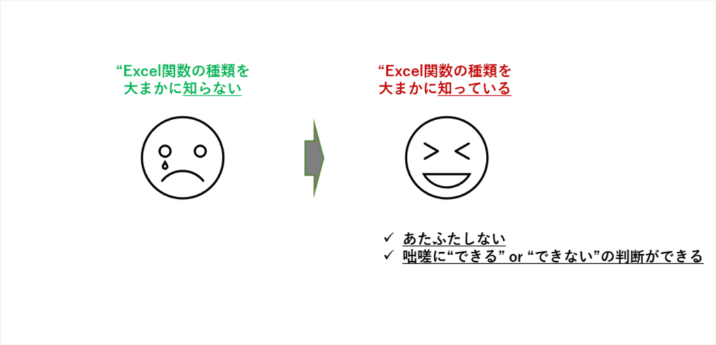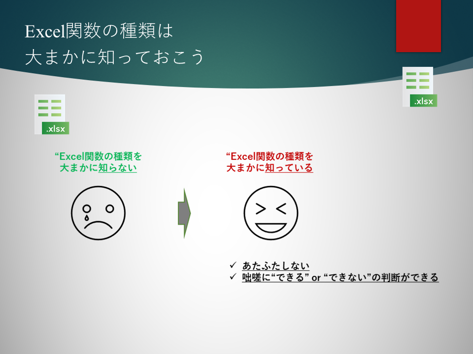 冷静に、スムーズに仕事ができるため、Excel関数の種類を大まかに知っておくことが大切です。