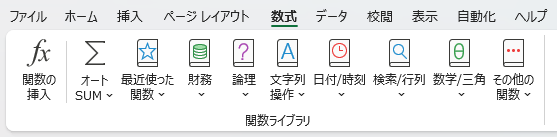 | 日付と時刻の関数 | 日付に関する処理を行う。例えば、現在の日付、曜日、時間などを取得する | TODAY/YEARなど | |