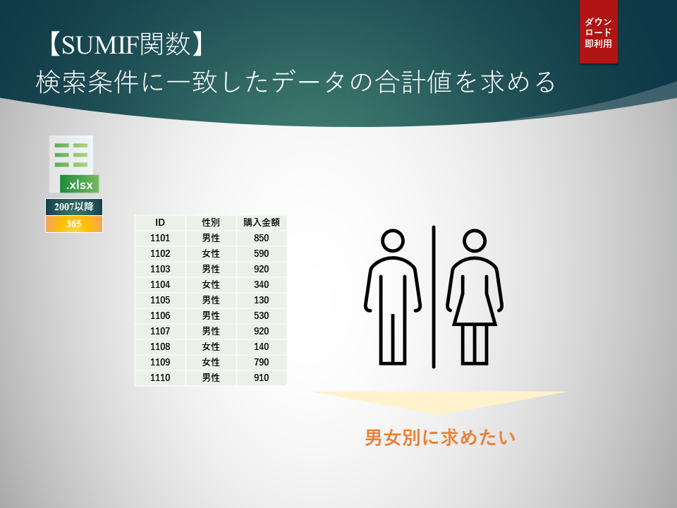 特定の文字列に合致したデータのみを合計できることが分かっていただければ大変うれしく思います。