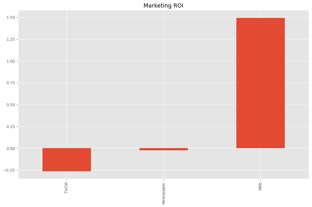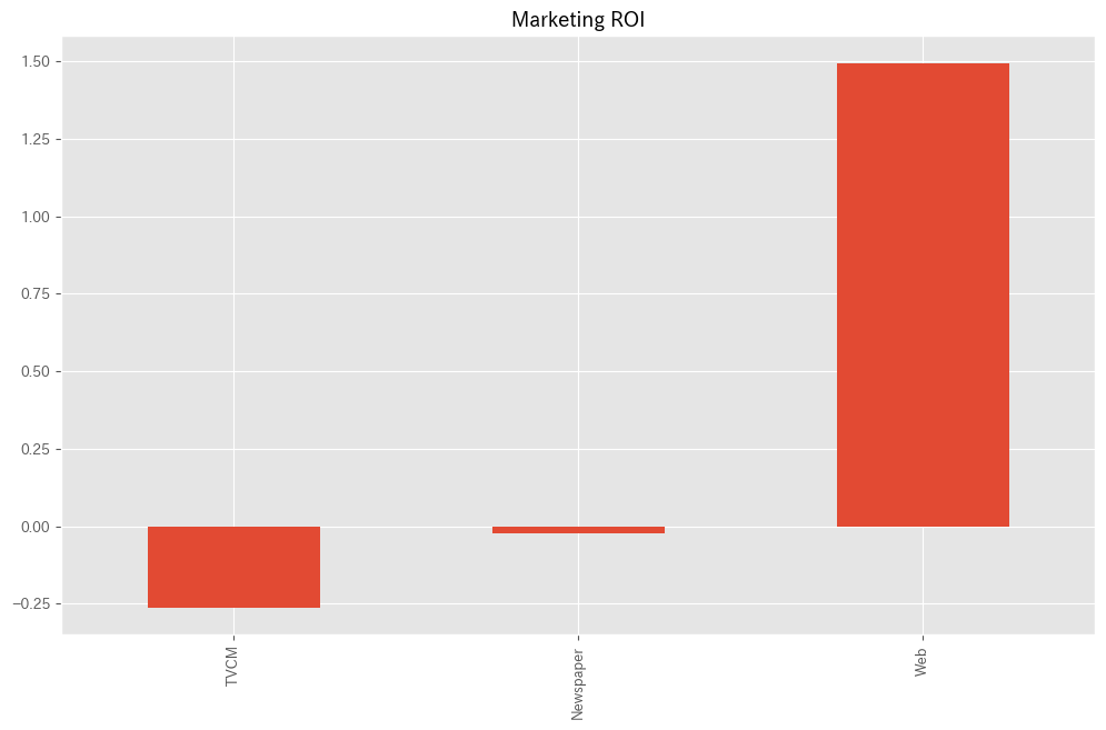 最後に、各メディアのマーケティングROIを計算します。