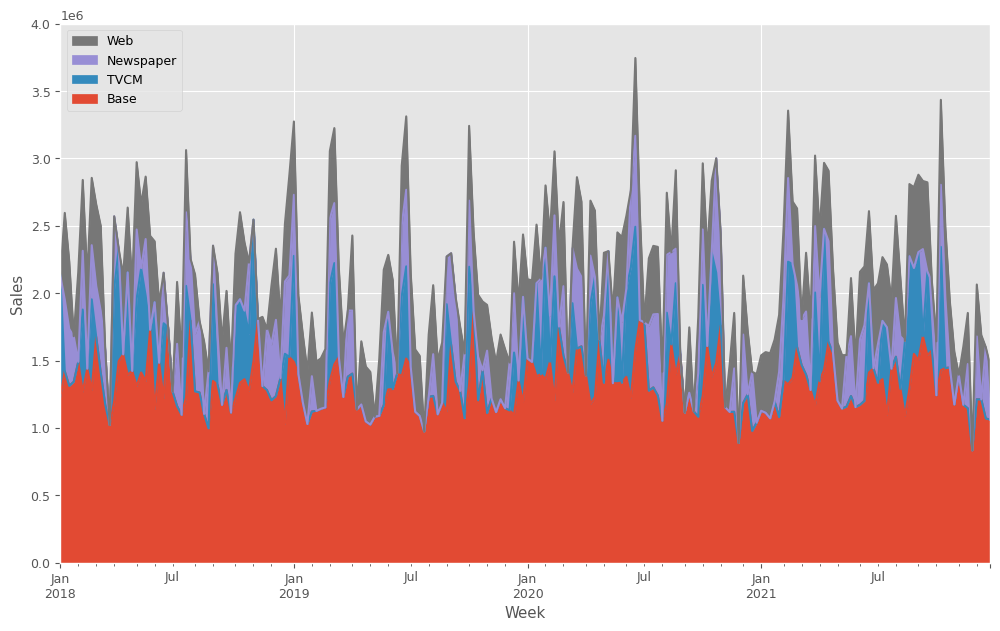 - 説明変数:TVCM、Newspaper、Webのコスト