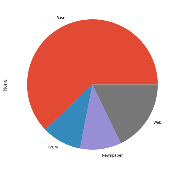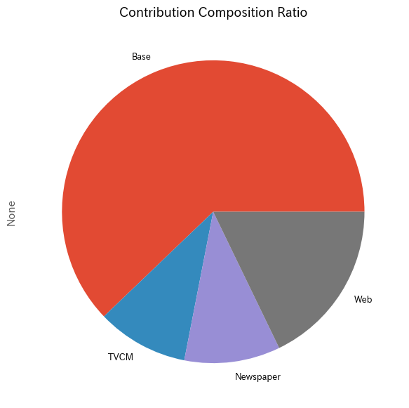 - 次に、売上をMMMを使い分解し、媒体別の売上貢献度を求めます。