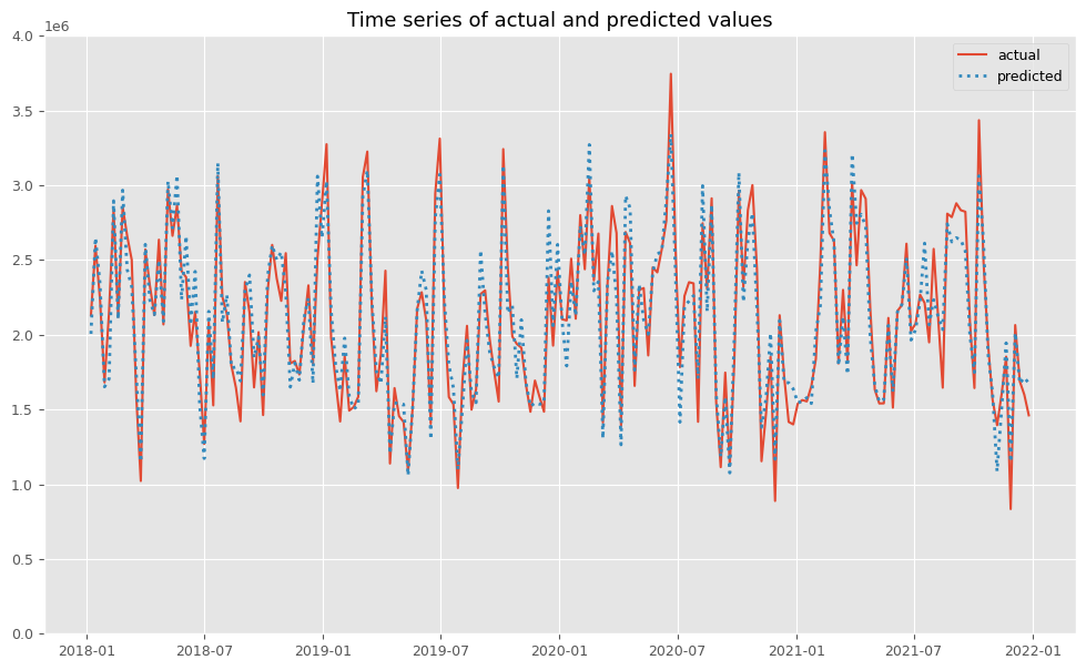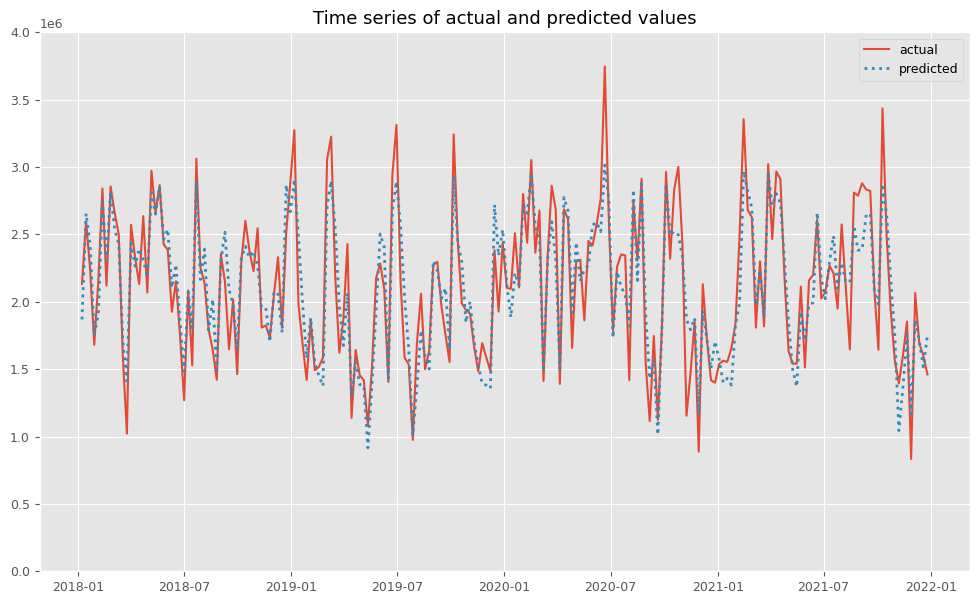 RMSE: 175244.63286004536 MAE: 141136.68030802492 MAPE: 0.07014970643405759 R2: 0.9014811355562776