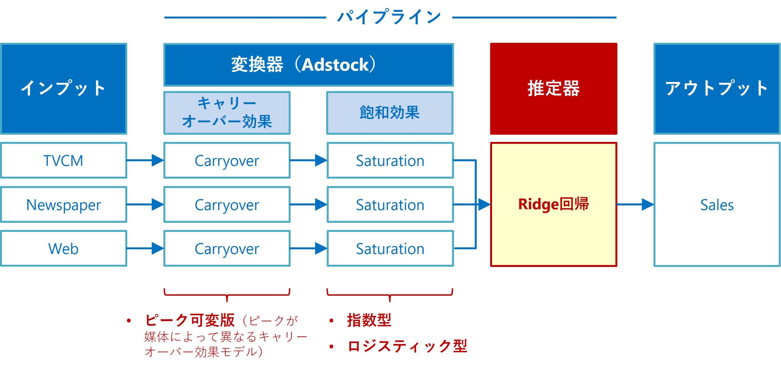 今回構築するMMMは、人がハイパーパラメータを付与するRidge MMMパイプラインです。