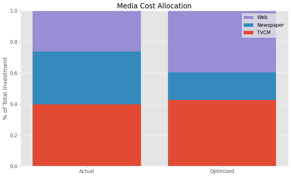 - comparison_df (pd.DataFrame): 最適化前と最適化後のメディアコストの割合を比較したDataFrame