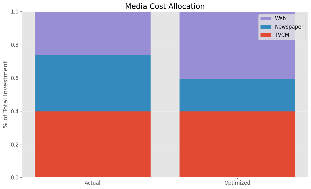 Actual Allocation Optimized Allocation TVCM 0.397076 0.397076 Newspaper 0.339156 0.195155 Web 0.263768 0.407769