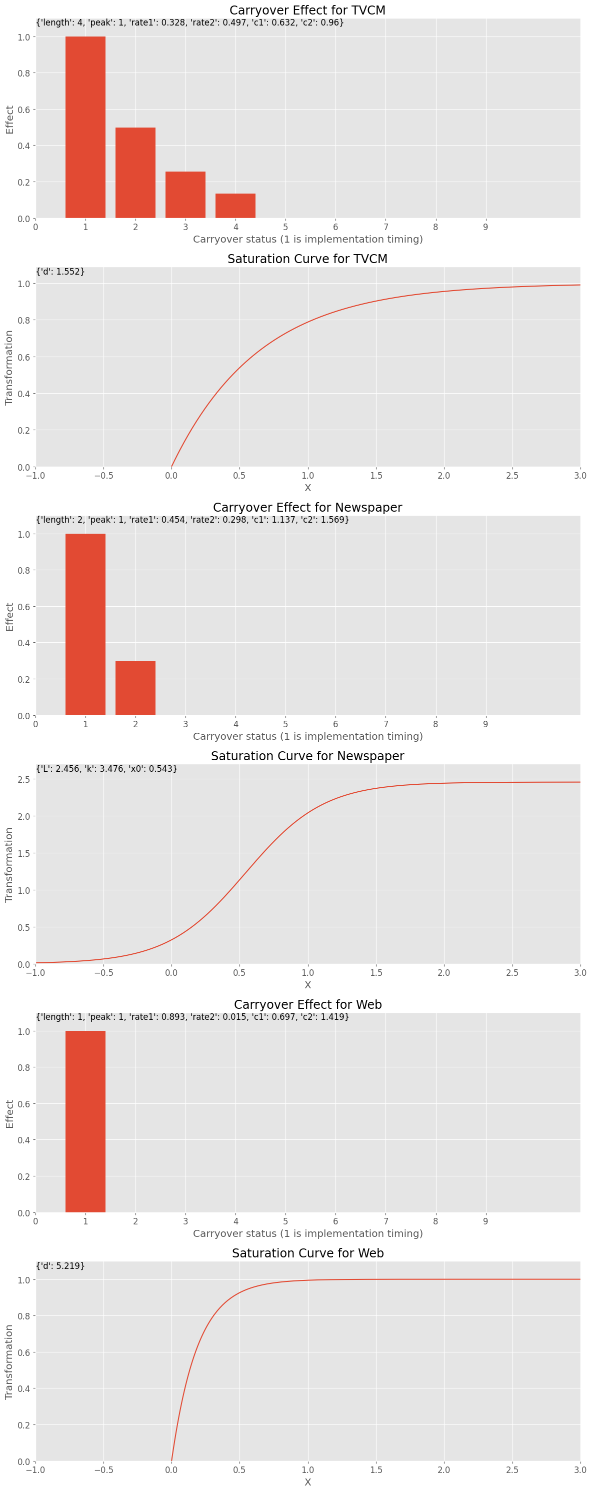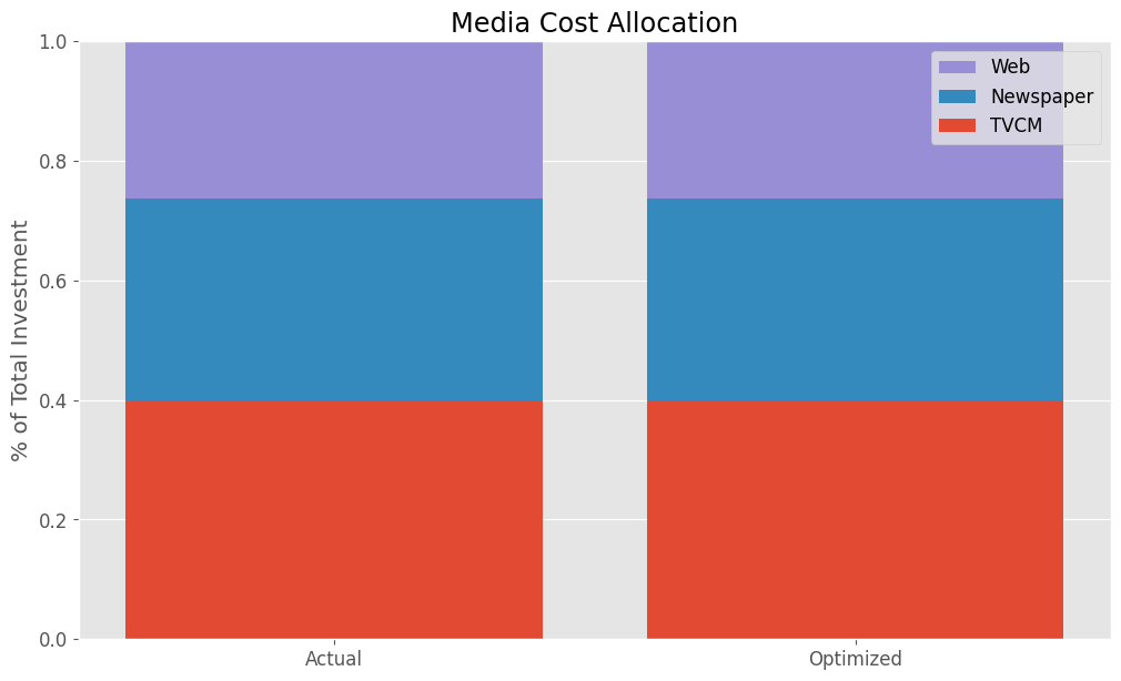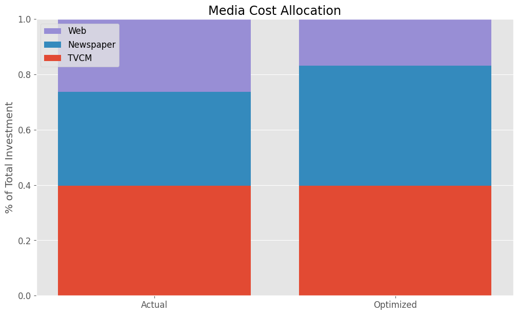 PythonによるMMM(マーケティングミックスモデリング)とビジネス活用- 振返り分析・最適投資配分編(その2)-線形回帰系MMMの最適投資配分(特徴量指定・ハイパラ付与)