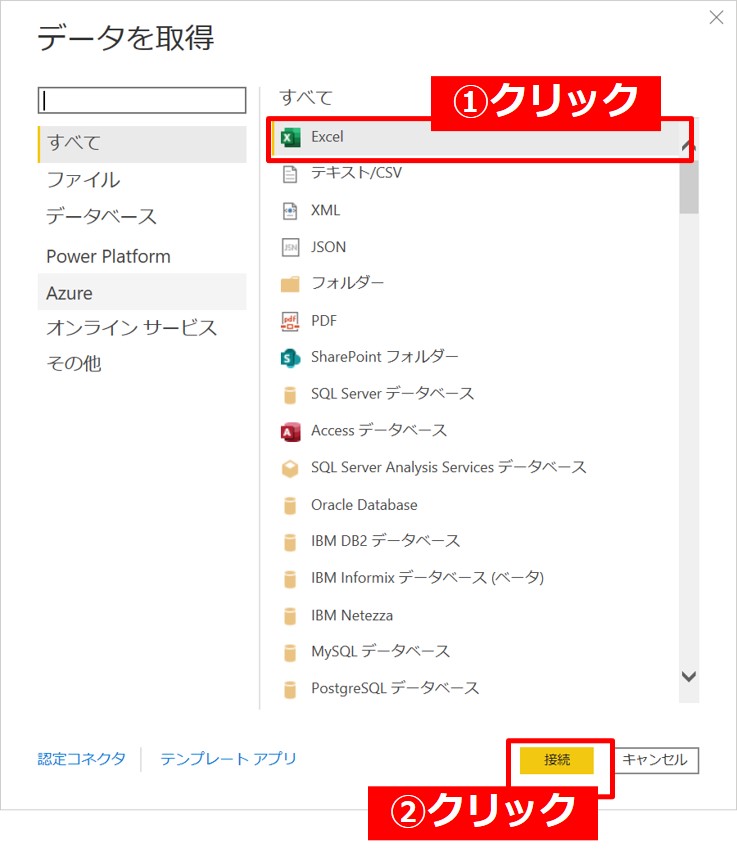 百聞は一見に如かずということで、実際のPower BIで「データを取得」の画面を見てみましょう。