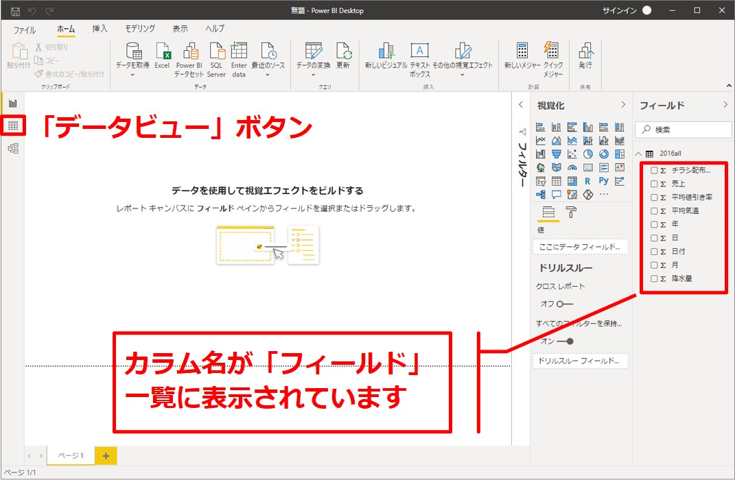 レポート エディターが表示されます。「データビュー」ボタンをクリックします。