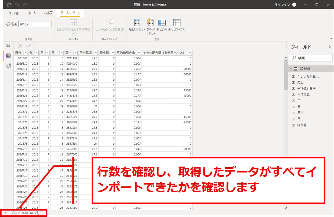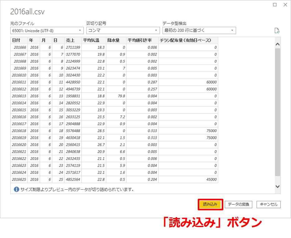 取得したデータであるかを目視で確認できます。問題がなさそうであれば、「読み込み」ボタンをクリックします。