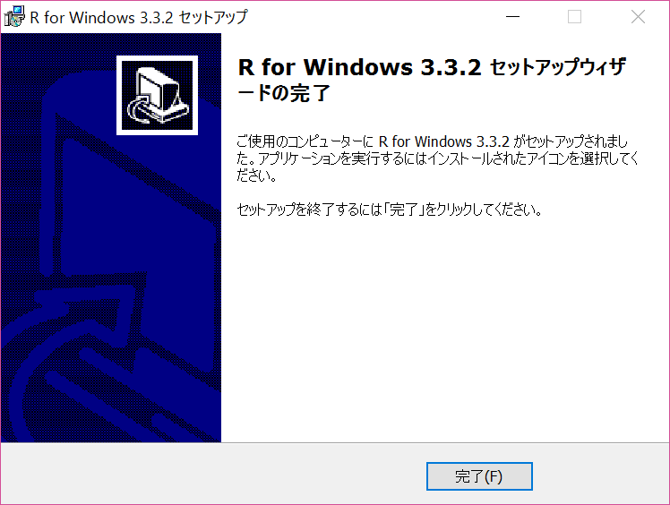 ダウンロードしたら「R-3.3.2-win.exe」をダブルクリックし、PCへのインストールを開始します。