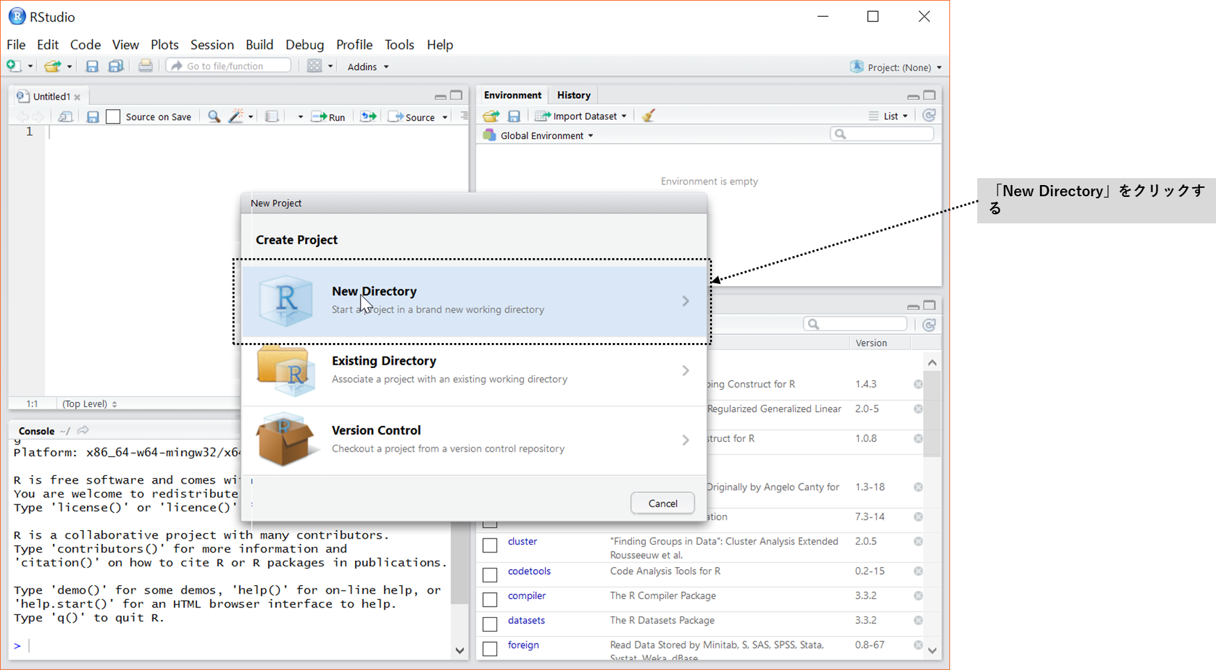 新しいプロジェクトを構築するときは、基本「New Directory」を選択します。