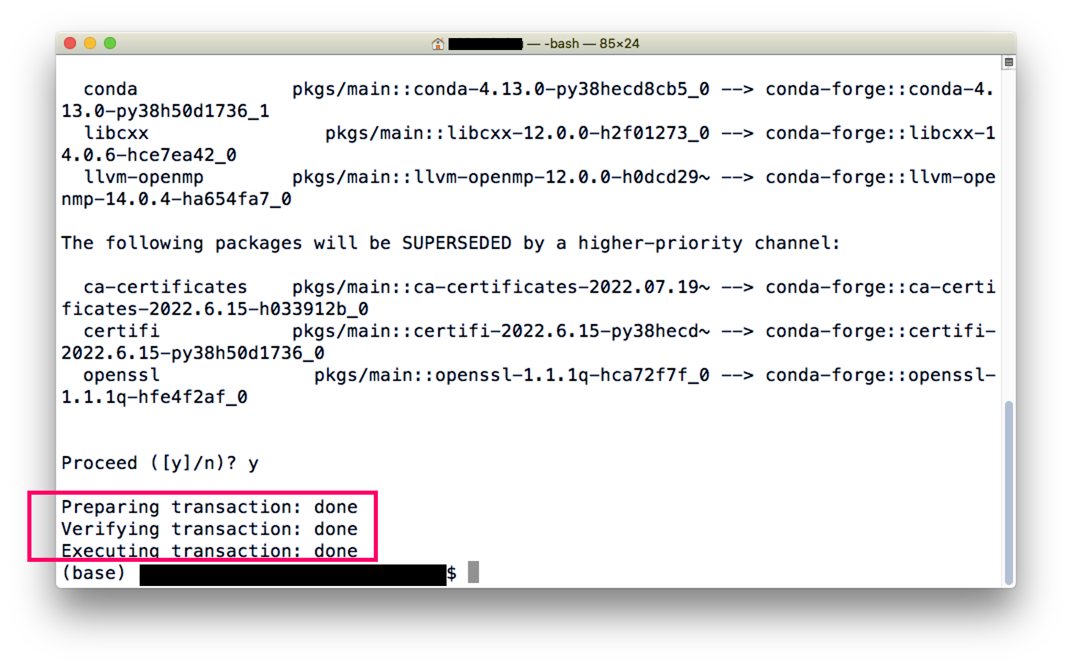 途中でProceed ([y]/n)?と聞かれますので、キーボードからyと入力してください。(インストールをやめたい場合はnを入力します)