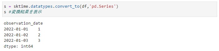 convert_to関数で、mtype=pd.Seriesへと変換します。