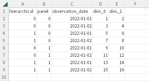 読み込むデータは、sample_hierarchical.csv(階層時系列データ)です。
