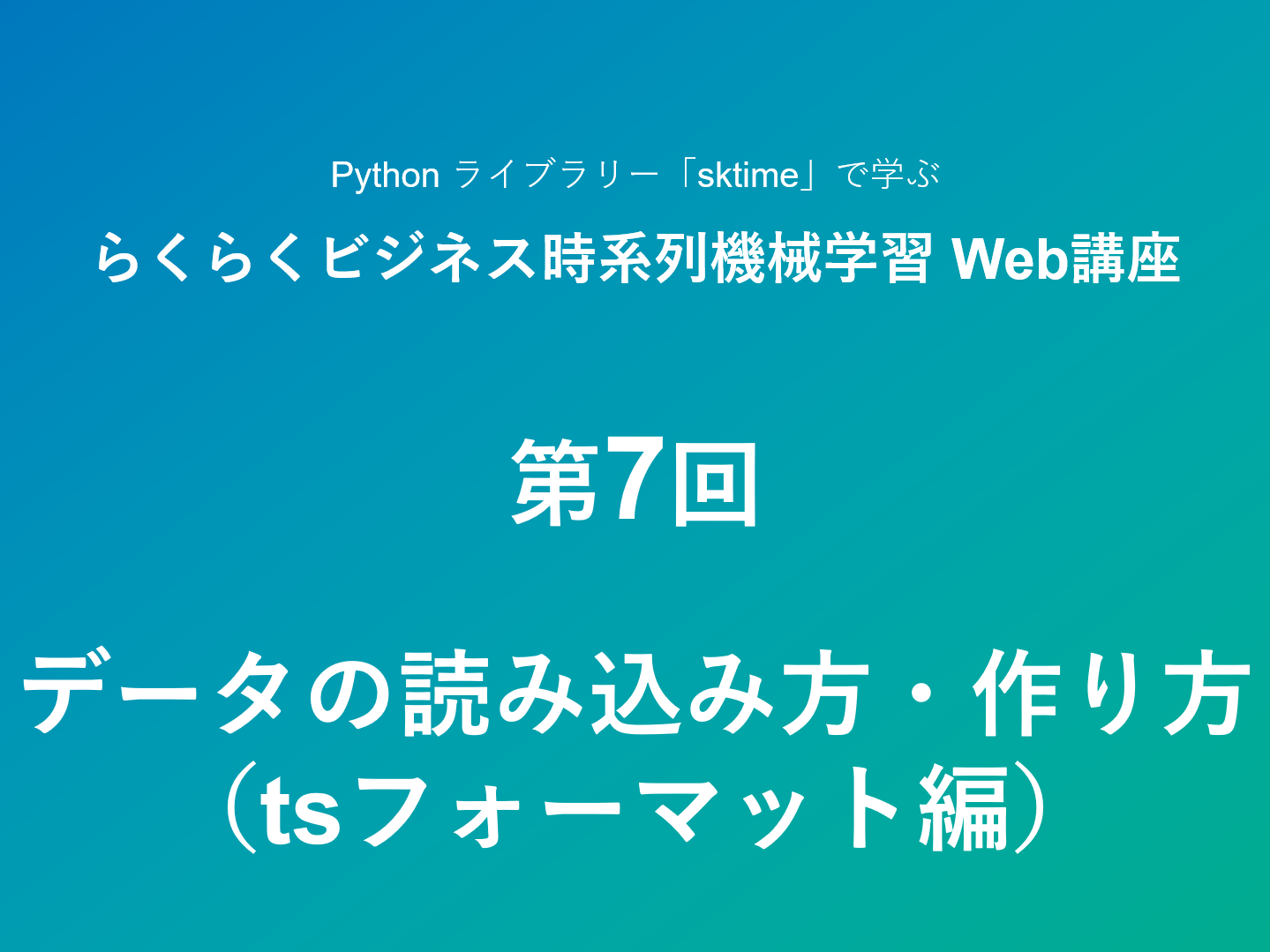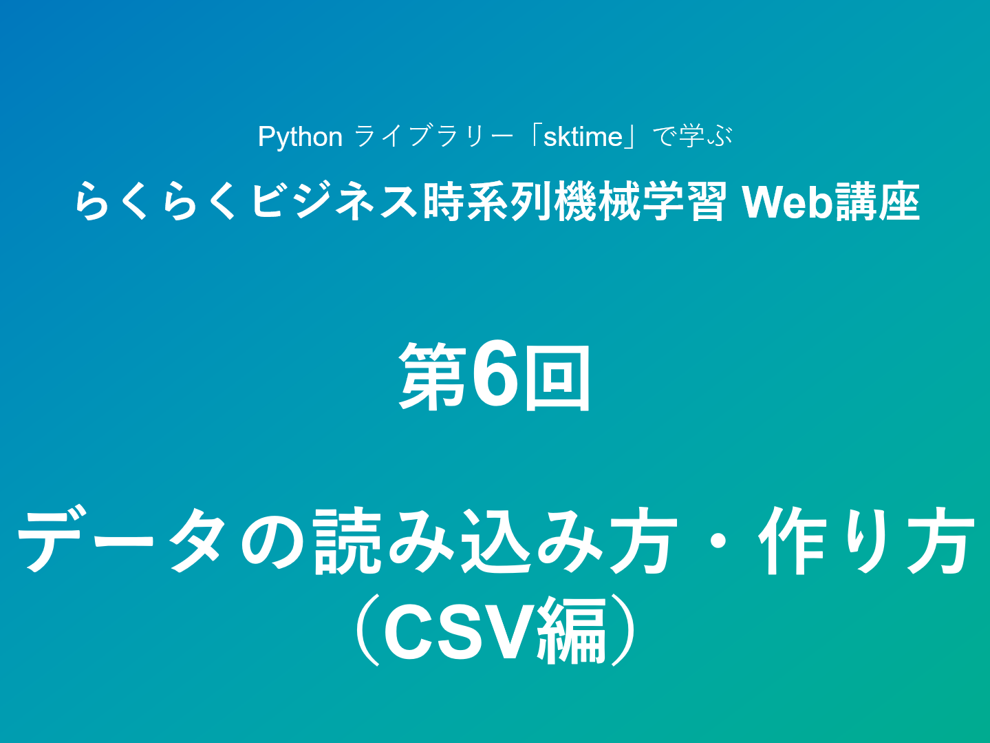 前回は、最も利用頻度が高いと思われるCSVの読み込み方と、sktimeデータフォーマットの作り方を説明しました。