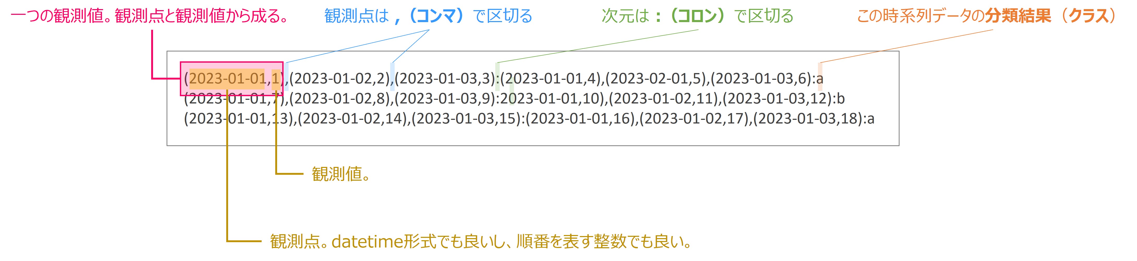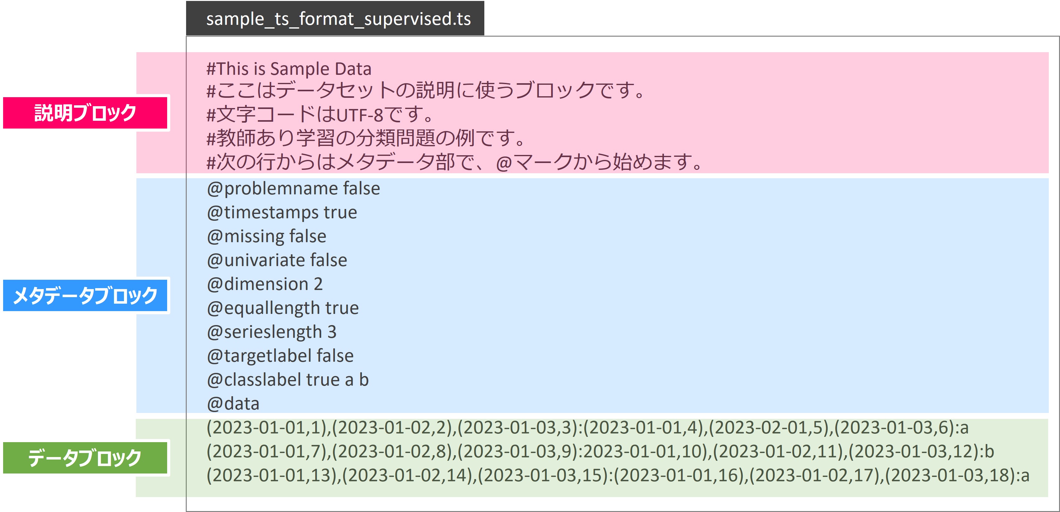 | @problemname | データセットの名前 | 文字列 | TsFormatSamples |